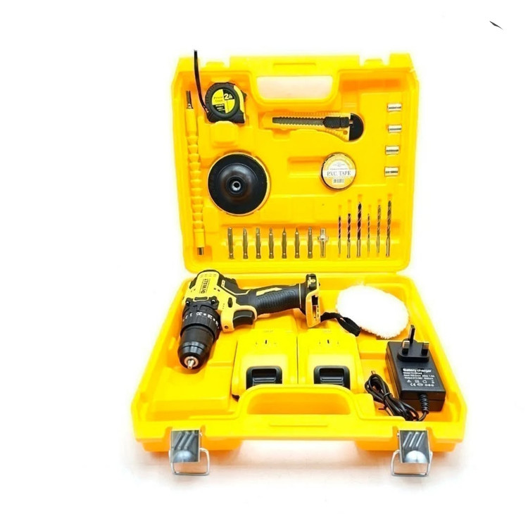 ✔️ به همراه لوازم همراه؛ پد پولیش، پوست بره، متر ۳ متری، چسب برق، مته آهن ( سایز ۳، ۴ و ۵ میلیمتر)، مته چوب (سایز ۳، ۴ و ۵ میلیمتر)، رابط فنری تاشونده، سه عدد نوک پیچ گوشتی چهارسو و سه عدد دو سو، بکس(سایز ۸، ۹، ۱۰ و ۱۱میلیمتر) و تبدیل بکس خور سر دریلی سایز ۱/۴