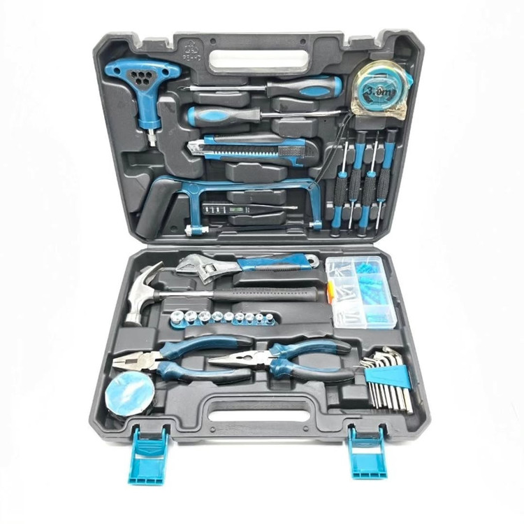 آچار فرانسه سایز ۸، انبردست، دمباریک، چراغ قوه LED، چکش با میخ کش، مجموعه هشت عددی آچار آلن، کاتر سایز بزرگ روکش دار، بکس تک سایز ۴ تا ۱۳، متر ۳ متری روکش دار، پیچ گوشتی دوسو و چهارسو سایز بزرگ، چهار عدد پیچ گوشتی سایز ریز دو سو و چهار سو، دسته پیچ گوشتی T نوک خوربکسی، ۹ عدد نوک پیچ گوشتی، تبدیل نوک پیچ گوشتی به بکس چسب برق، فازمتر دیجیتال، دو سایز پیچ گوشتی موبایلی دو سو و دو سایز پیچ گوشتی موبایلی چهارسو، کمان اره چوب و فلز، مجموعه سایزبندی پیچ و رولپلاک