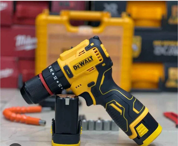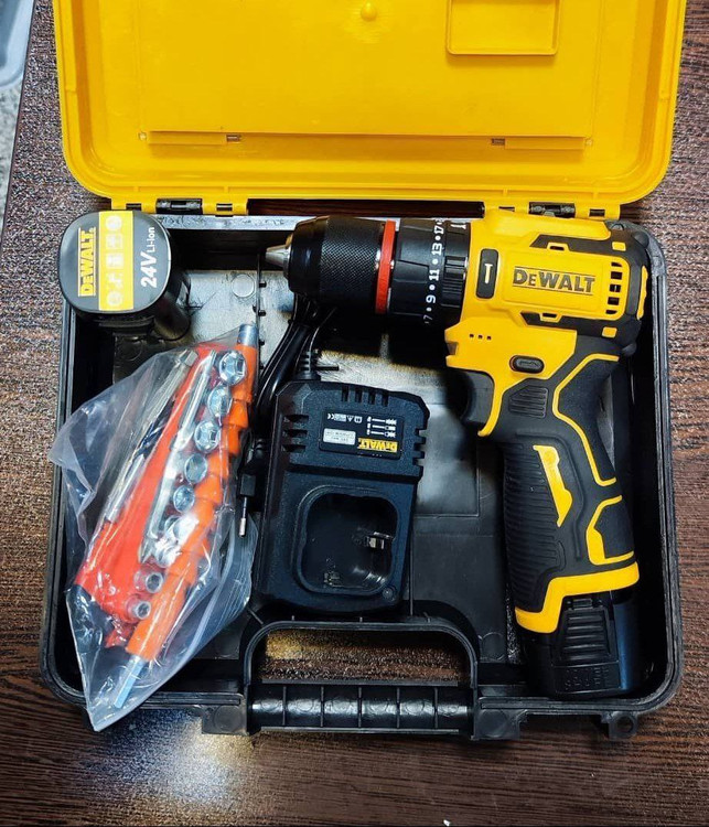 دریل شارژی 24ولت دیوالت متور براشلس ضد آب سه نظام پلاستیکی اتوماتیک سه حالته دریل پیچ بند و چکش دو حالته سرعتی و قدرتی دو باتری