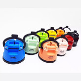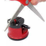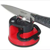 سطح جامدي که مي خواهيد تيز کنيد ابتدا بايد کاملا تميز نماييد – دسته گيره چاقوتيزکن روي سطح صاف ترجيحا شيشه وياکابينت آشپزخانه باشد – با فشاردادن برروي چاقوتيزکن اجازه دهيد تا کاملا روي سطح صاف ثابت شود – چاقو را جهت صيقل داخل تيغه ها گذاشته وبطرف خود مي کشيم توجه : از کشيدن چاقو در جهت مخالف پرهيز شود – اين عمل را سه ويا چها بار تکرارکنيد پس از اتمام کار گيره را رها وتيز کن را در جاي مطمئن نگهداري کنيد