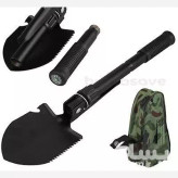 بیلچه تاشو چند کاره این بیل وکلنگ تاشو ارتشی یا نظامی کیف دار، از 2 قسمت ساخته شده است؛ که از یکدیگر، به صورت پیچی قابل جدا شدن هستند. 1-دسته، که شامل یک بخش پلاستیکی است؛ که محل قرارگیریِ دست میباشد و در پشت آن قطب نمایی تعبیه شده است. 2- بخش اصلی، که شامل یک کلنگ و یک بیل است. بیلِ این محصول در یک لبه، دارای یک بخش اره ای است. برای استفاده از هر کدام از این دو بخش، دیگری را روی دسته، خم کرده و پیچ تعبیه شده بر روی دسته را به سمت بالا میپیچیم. پشت کیف بیل تاشو یم جاکمری دوخته شده است که میتوان بیل را از جایی آویزان و یا به کمر خود متصل کنید و حمل آن را آسان میکند.